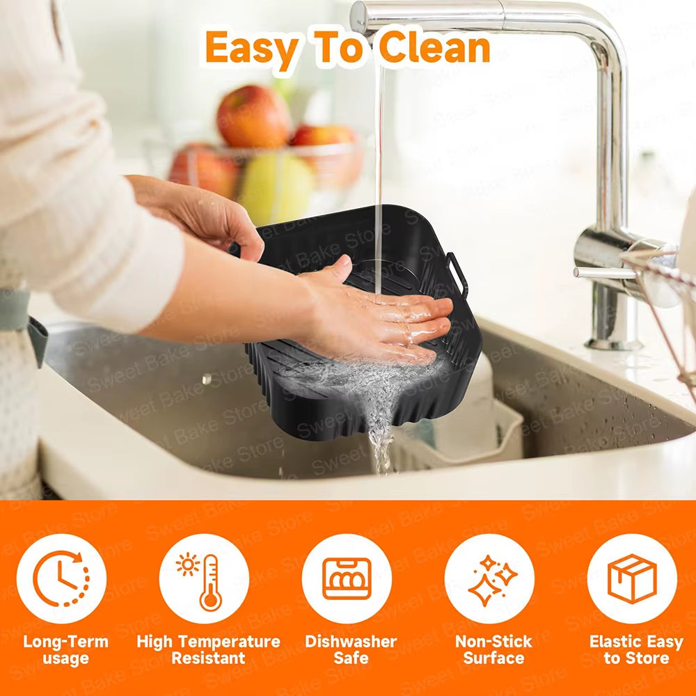 Removable, non-stick baskets that are dishwasher safe for effortless cleaning.